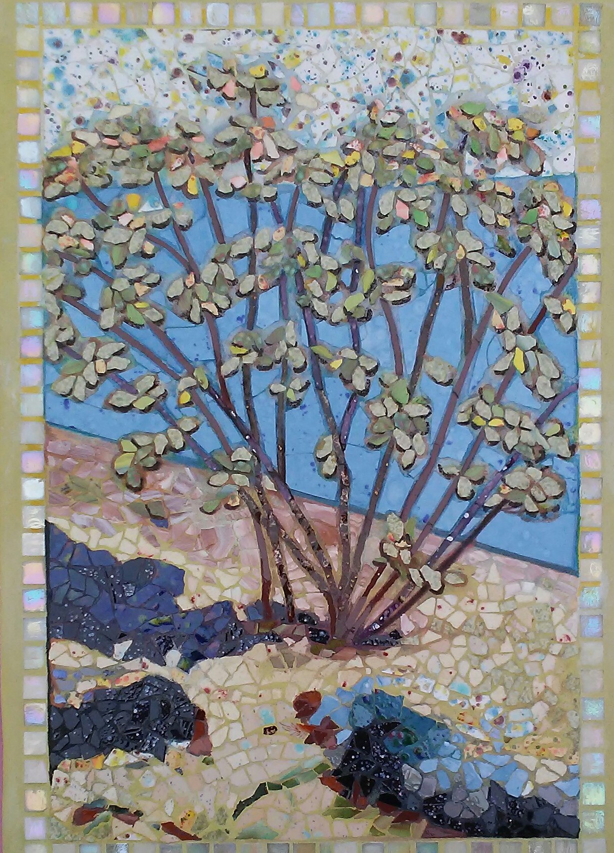 Second Place: Sylvia Mori – “Bush in Blue” – Ceramic Mosaic